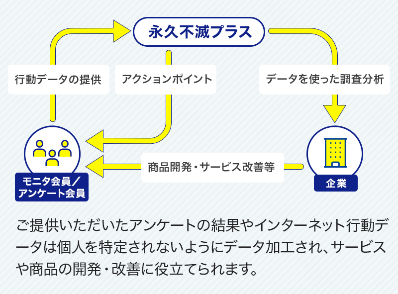 インターネット行動データのご提供で、初回登録時および毎月(継続期間)アクションポイント100ポイントをプレゼントいたします。※3